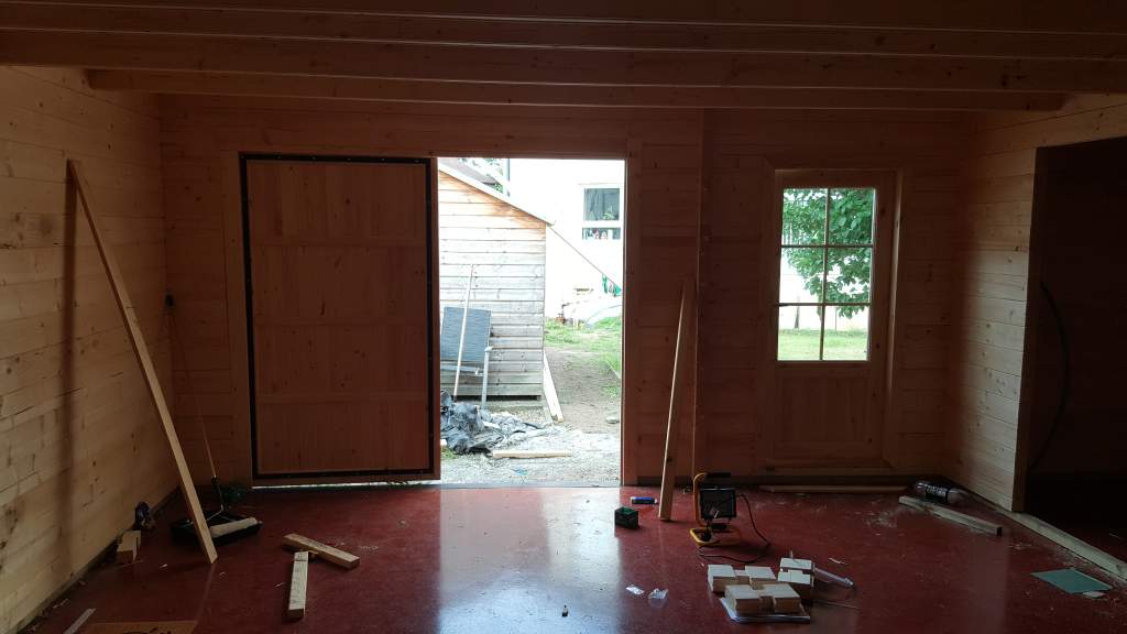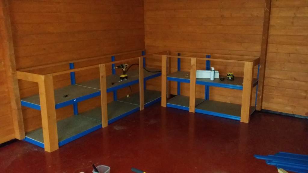 Lastly today I've started to install my workbench which is partly made out of the spare timber and some shelving