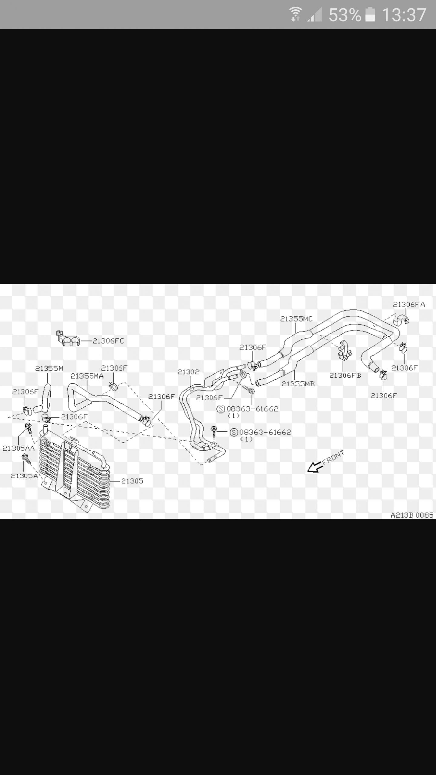 Whilst replacing my cats, I noticed my oil cooler hose is leaking where it joins the hard pipe. I wanted to replace both of the hoses in the diagram (21355mb and 21355mc).