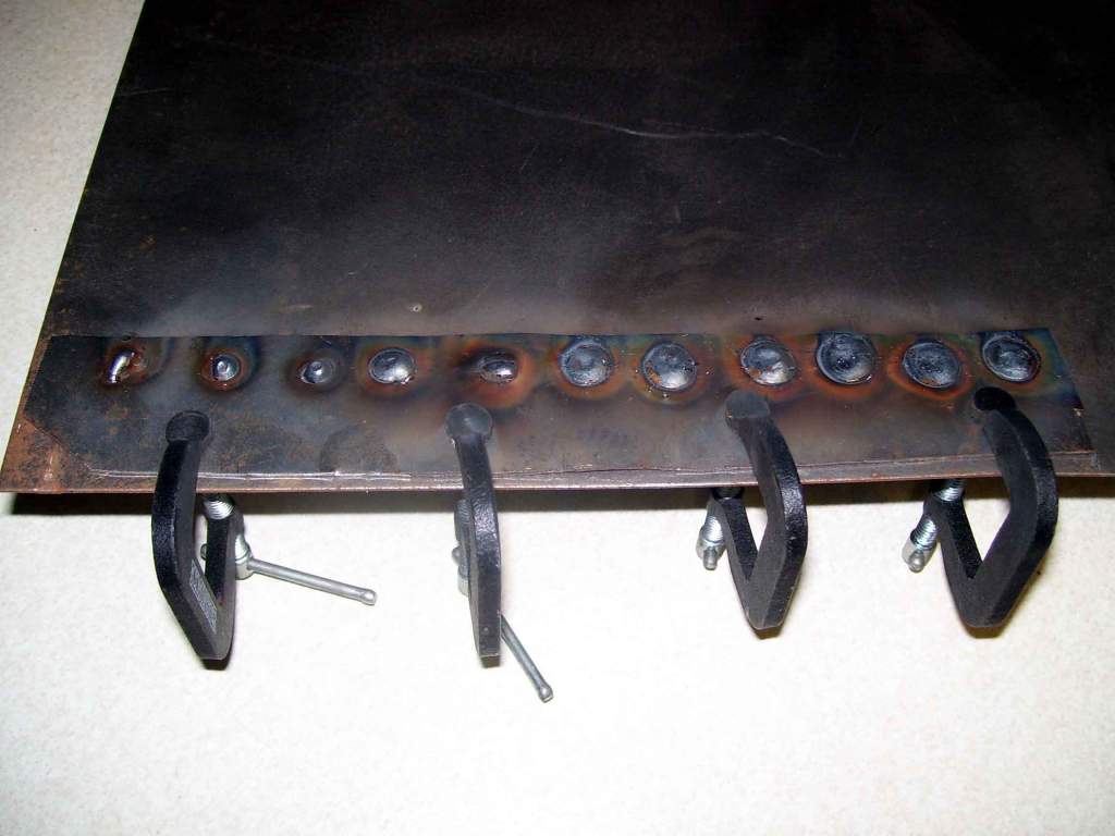 Sixth, power at 1 max, wire feed at 7.5 (better penetration, some spitting)