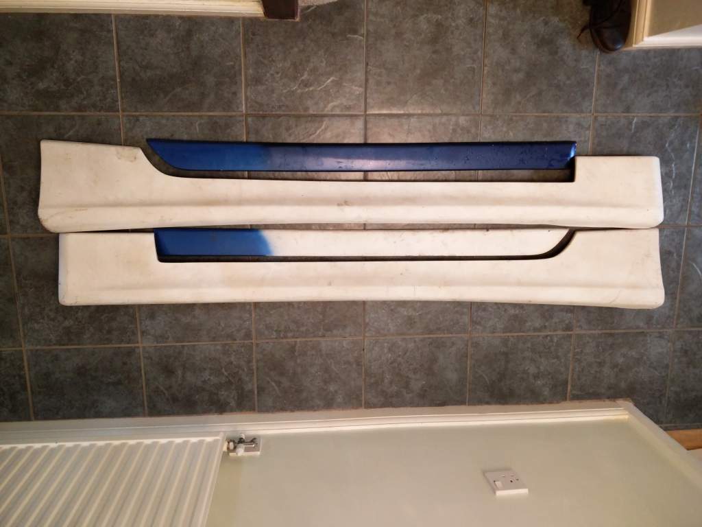 They do have some damage on the end of each skirt from where they've been knocked about in my garage, photographed below. Looks bad, but its an easy fibreglass repair.