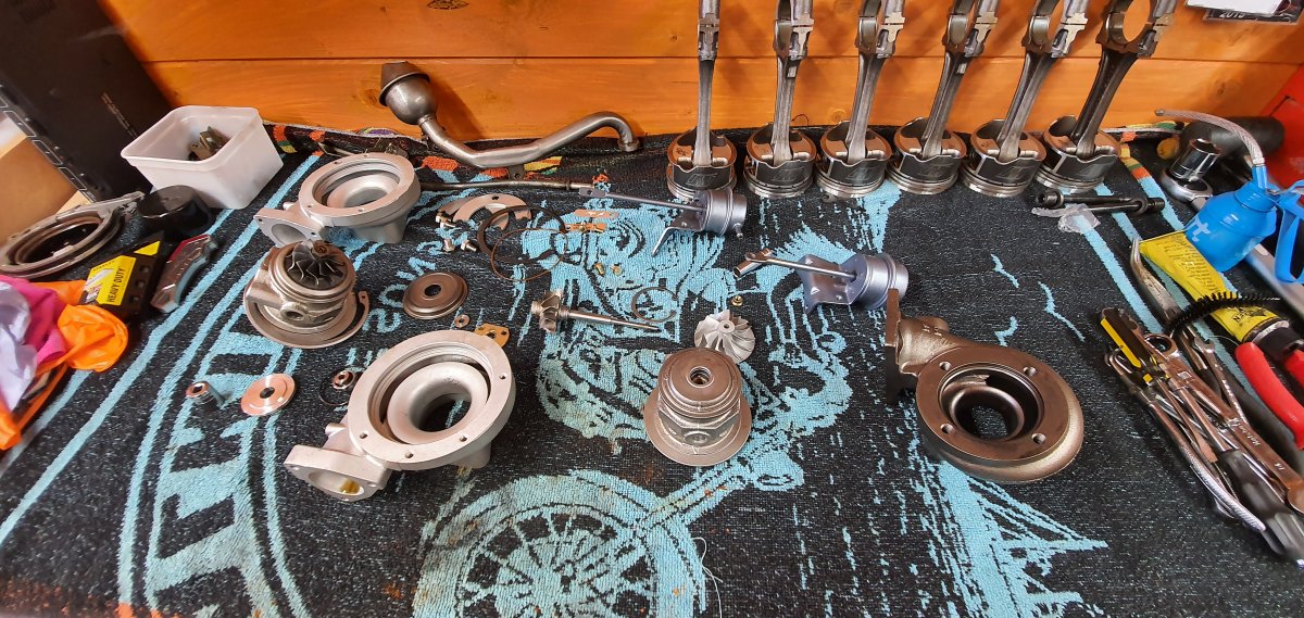 • After the oil got contaminated and slightly washed down with fuel the turbos also ceased up. I decided to strip them and do the rebuild myself as the costs for that at the moment to be done profe
