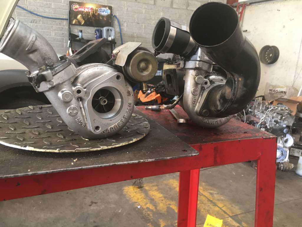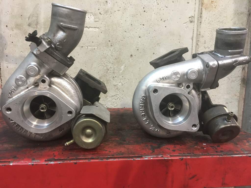 Both turbos off the car, first one with ancillaries stripped down, starting on the passenger one now