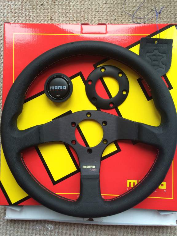 320mm momo tuner steering wheel got this new payed £190 for it used like 5 times comes with a boss and horn and bolts all you need to fit it genuine leather £140 posted