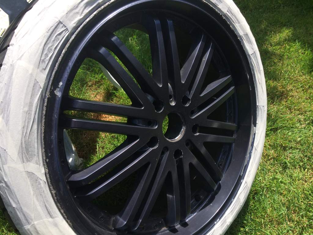 I've been annoyed with the state of my wheels for a season or two, some curb rash combined with the colour which was supposed to be graphite, it was actually a steely navy colour in some lights, not a good look on a red car. There a unfortunate offset for how low the car is and I've had to add some spacers to get the fitment right at this height compared and accolade the brakes. At 8j and 9j respectively there a touch narrow for my ultimate aims, in short I'm not planning on keeping them longer term. A tin of black hammerite has been waiting patiently on the shelf for just this job.