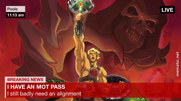 I managed to squeeze in a cheeky last minute MOT this afternoon. It was a place I’ve not been before and I don’t think they were much impressed with ol’ red, the low seating position seemed to give the tester a challenge. Then the usual stuff, where’s the rear fog light etc etc.