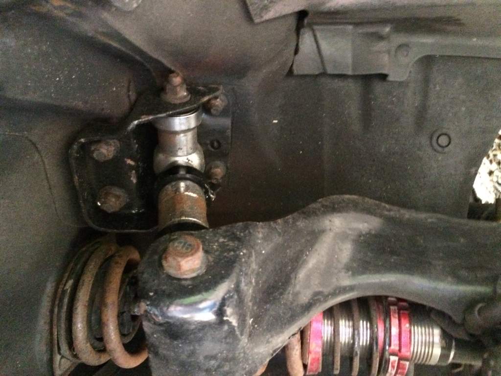 So now more about that shelf of parts. I purchased last winter a full rear subframe assembly off Jaffa, the one off his time attack car. Loads of goodies already polybushed to death etc. So I stripped it down to bare metal and started painting it all with a few coats of lovely hammerite. This is how it stands at present;