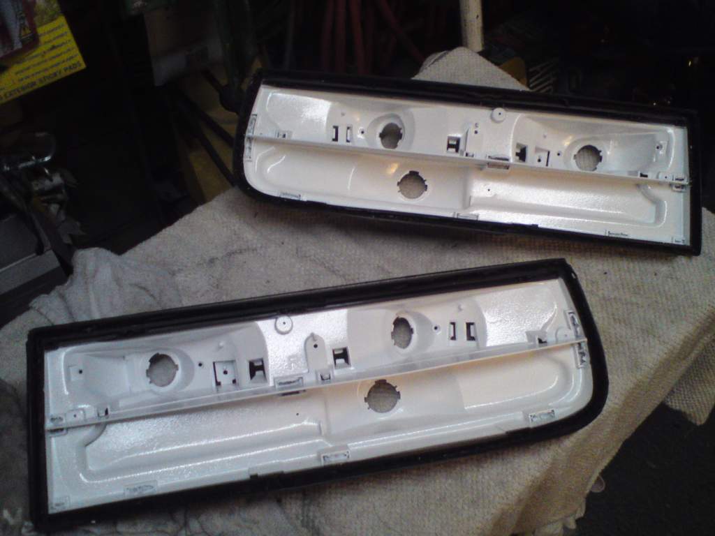 I sprayed the backs gloss white because over time they do go a little yellow and around the stop bulb the white crumbles away cos of the heat