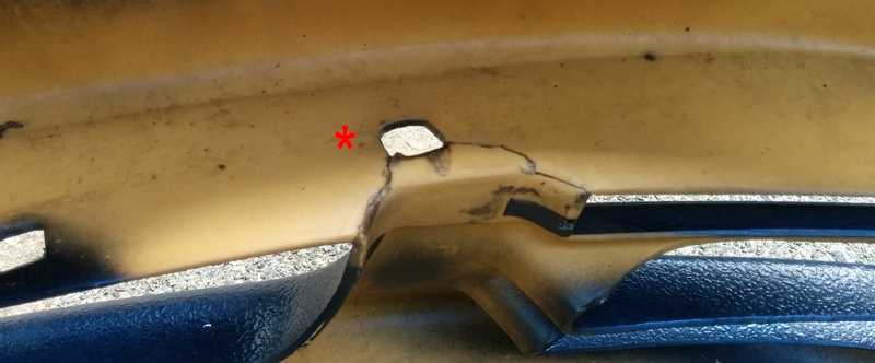 UK spec front bumper in good condition, painted in TK3. Effective repair to small crack (indicated with red star).