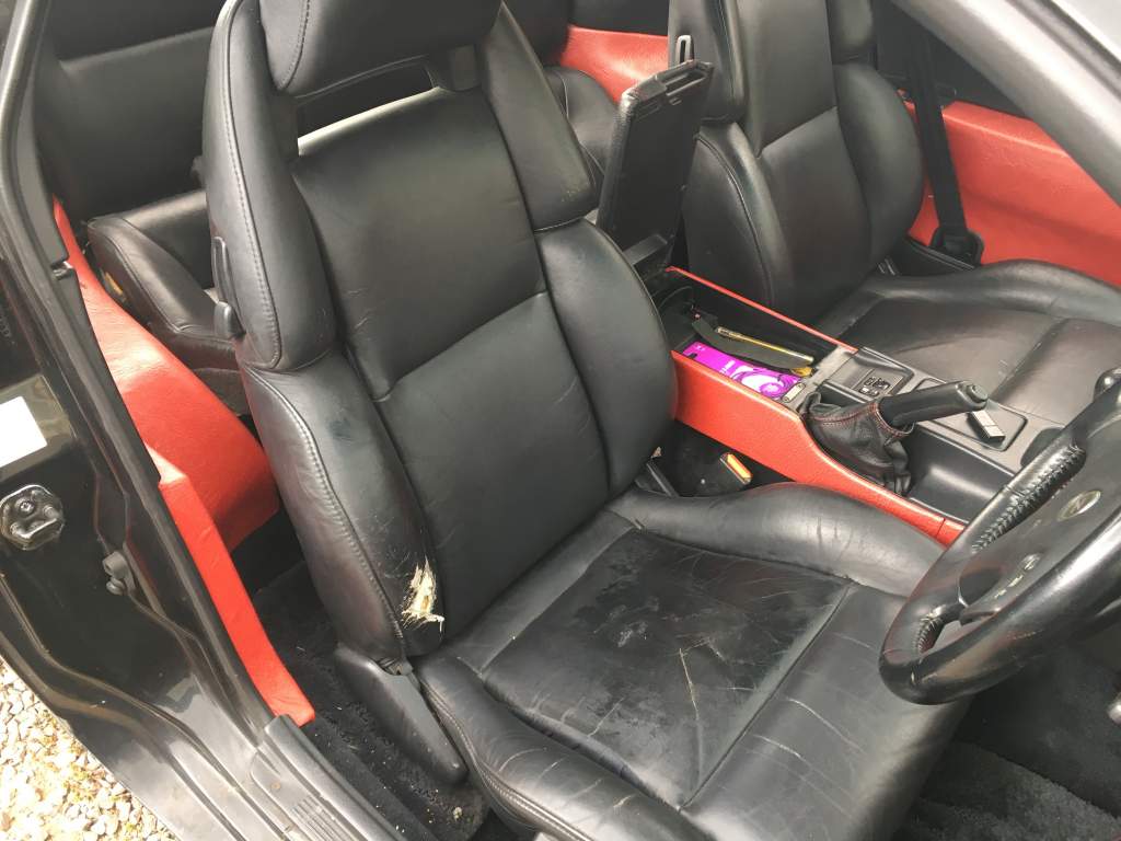 set of series 1 leather seats, drivers electric, passenger manual. drivers seat worn in the usual place on the bolster and the seat base is cracked/split. passenger seat is fine, back seat is ok the back is still quite supple surprisingly, and the base is ok with no splits.