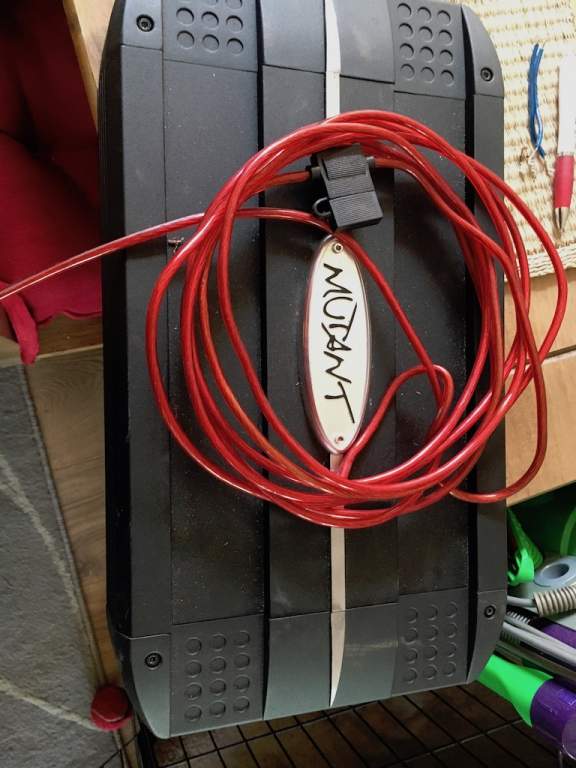 the amp is a mutant MT1204 4 channel amp 60w per channel, i used this bridged for the sub and stereo for front speakers. i have also included the power cable for the amp to run from the battery but you would need to source an earth cable and remote cable for switching.