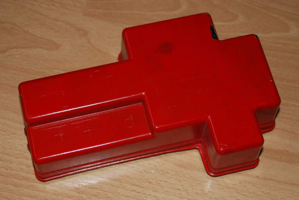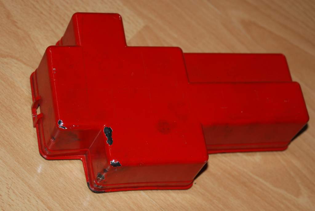 Fuse cover in red. needs stripping and re doing from my point of view. Came with my car and so have no more info on it, ie: paint used etc. Coming off in places. £10 inc Postage.