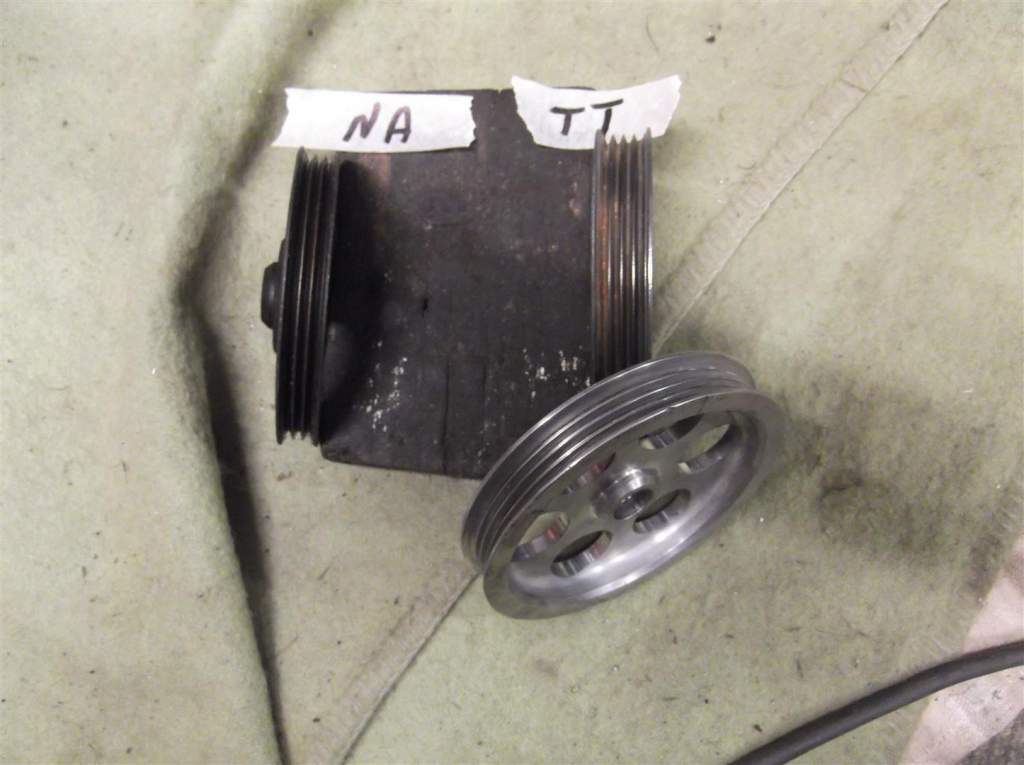 Or you can replace your pump and resevoir with NA units, in that case the pulleys would fit.