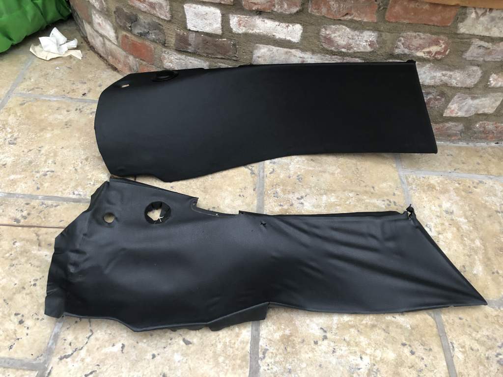 This evening I also finished my first attempt at retrimming some interior parts, the rear quarter panel vinyl sections. I don’t think they came out too badly consider my inexperience. The colour is a tiny bit darker and the faux texture differs slightly, but it’s close enough that I doubt anyone would notice