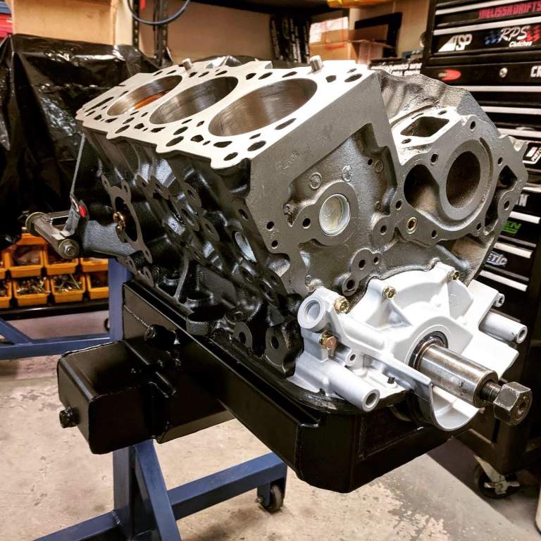 Complete spec: @cp_carrillo 88mm pistons treated with @techlinecoatings black Diamondyze, crown and skirt ceramic coating, @saenzperformance tri-beam forged con rods, @kingbearings XP series mains and big end bearings, @arpbolts 2000 series main studs and rod bolts, EPR Billet mains caps, modified crank, modified oil pump and extended and baffled sump.