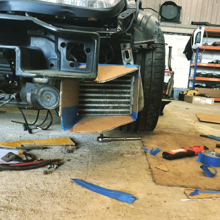 I’ve also had a bit of a play with ducting the air out of the intercoolers, through the vents I installed into the arch liners. What a PITA that turned out to be!