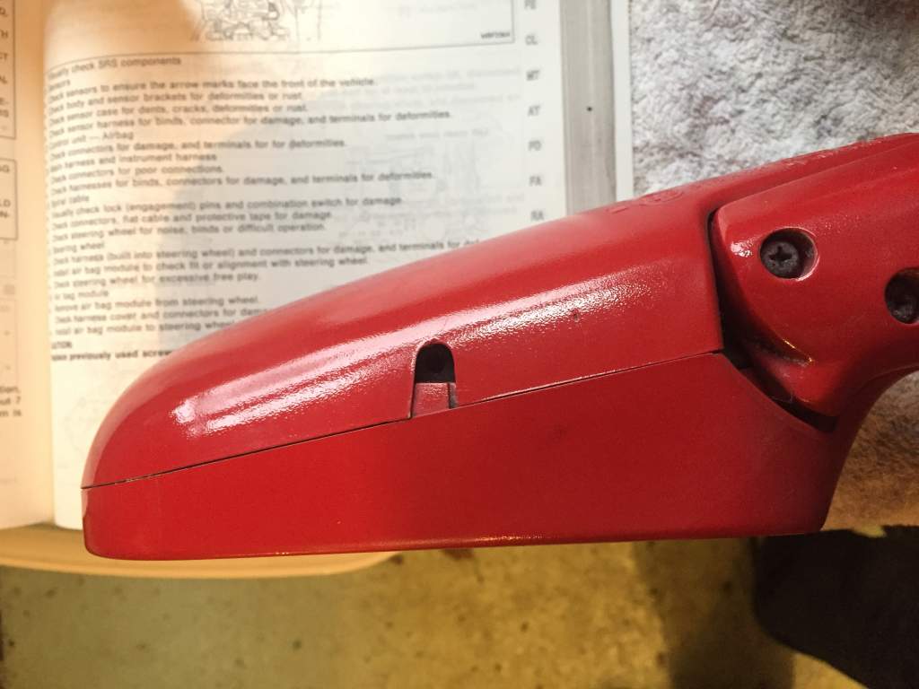 I have read on US forums that on JDM mirrors, you need to remove the small screw on the underside of the casing before be able to get the glass out. You will see that my mirror housing does not have this screw in place, and I am reluctant to try prising the glass out at this stage.