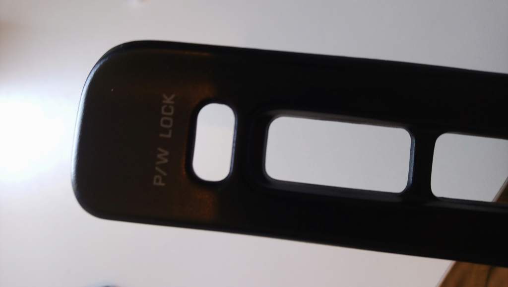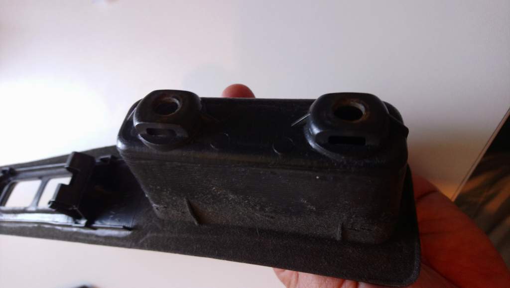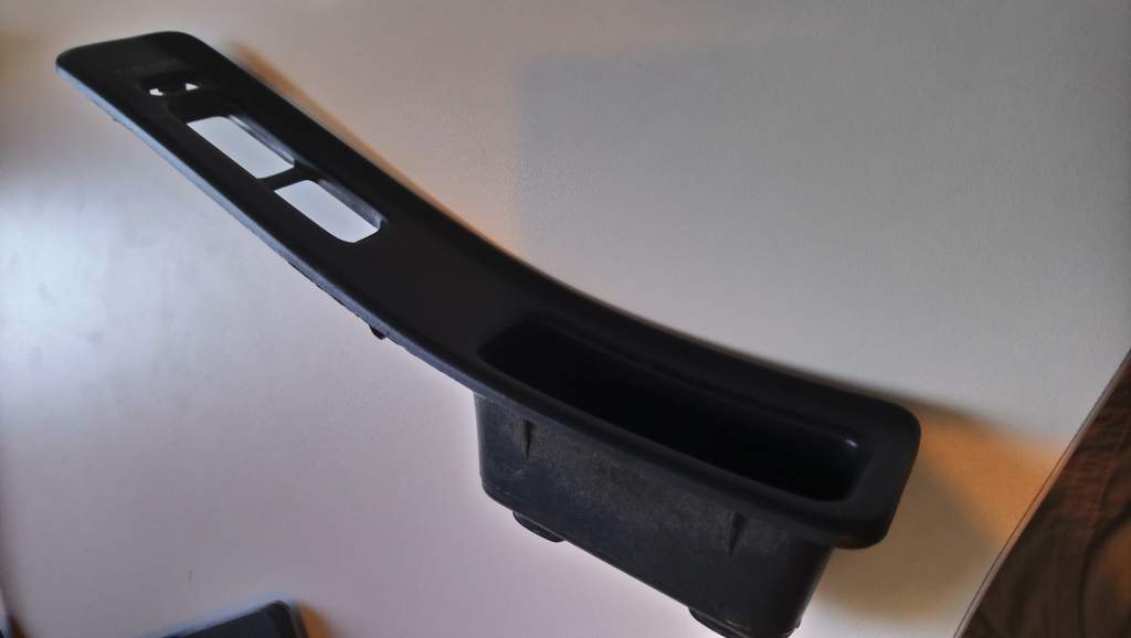 Also a driver side electric window switch finisher. The often crack in the middle and the screw holes disintegrate. This one is in great shape. Missing the bit of carpet that goes inside the grab handle area, but other than that, it would make a great replacement for one that's broken or faded.