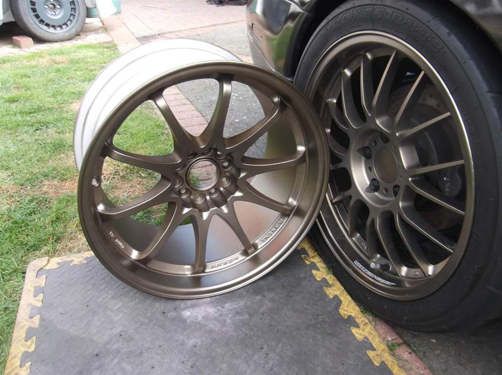 The final tone adjustment comes from misting on a very light coat of the "Rays Racing Bronze" aerosol supplied by Wheelpaints.co.uk.