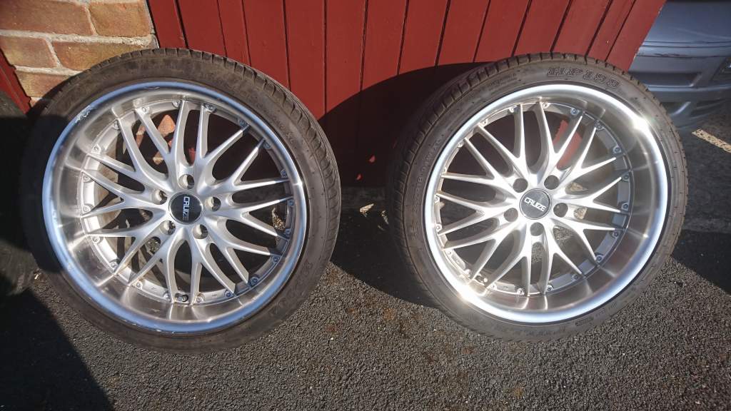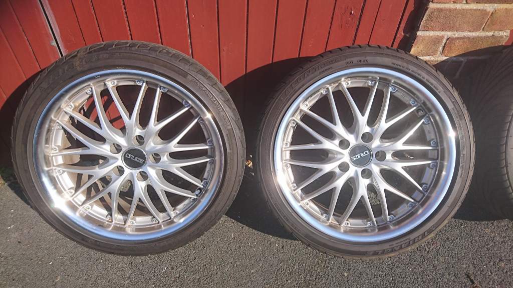 I've got a set of 18" cruize alloys for sale. Fronts 8.5j rears 9.5j Excellent condition, budget tyres with plenty of tread left. Will get some more detailed pictures when I get chance. £450ono
