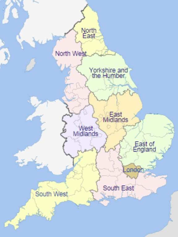 Midlands. (West Midlands, East Midlands and the East of England)