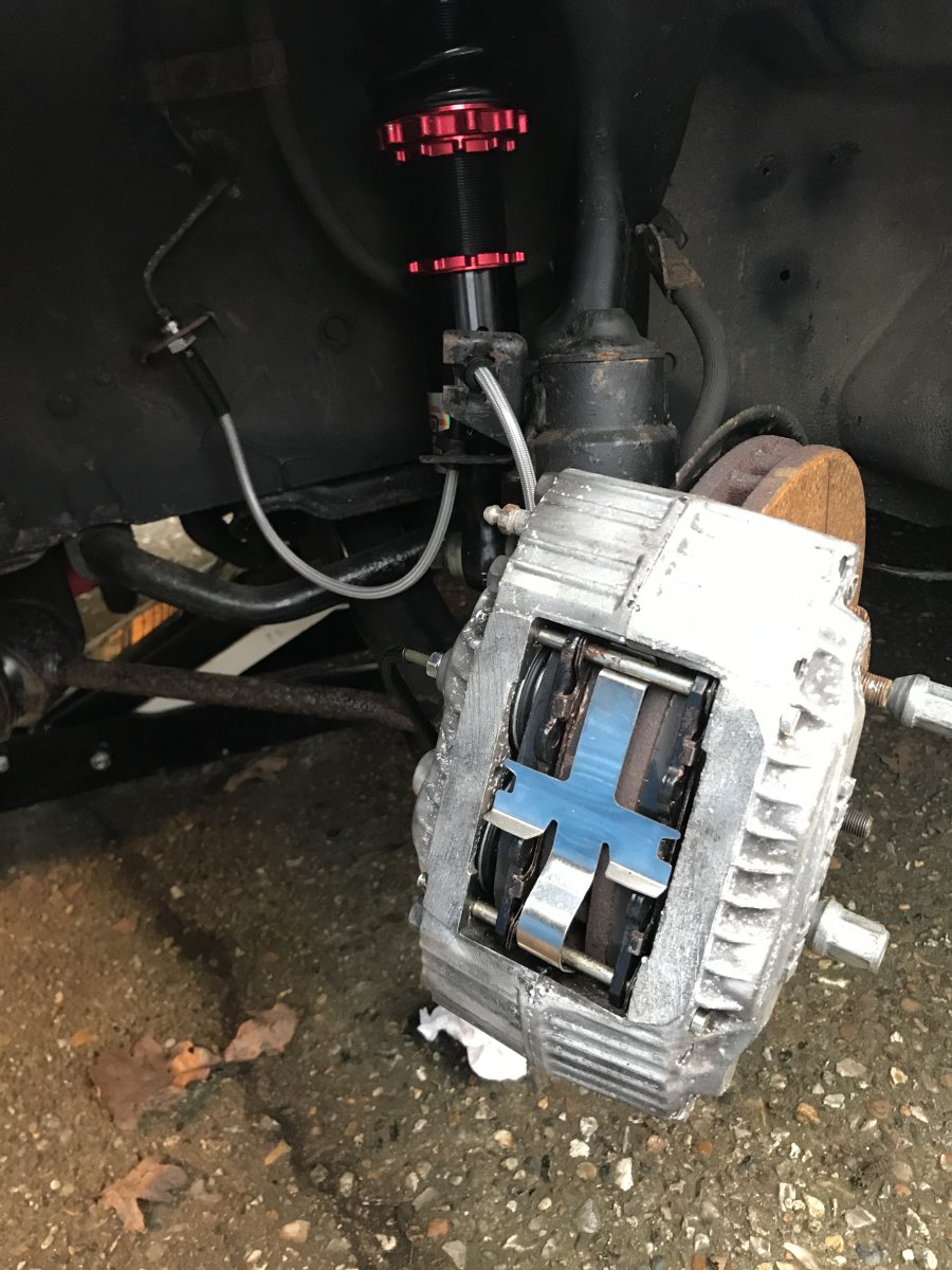 Started work on the car again, managed to get the brake callipers on.