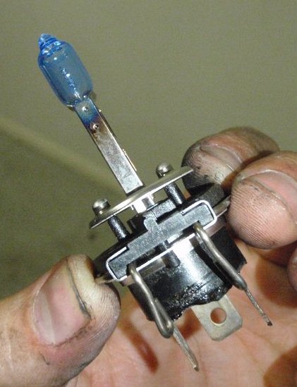 The H1 bulb unplugs from the factory holder/adapter which the connector in the photo is fitted to.