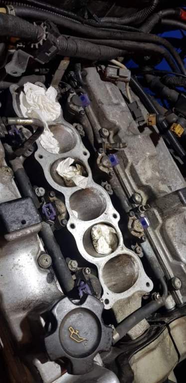 Remove Plenum and fit NEW OEM INJECTORS and Replace broken plugs.