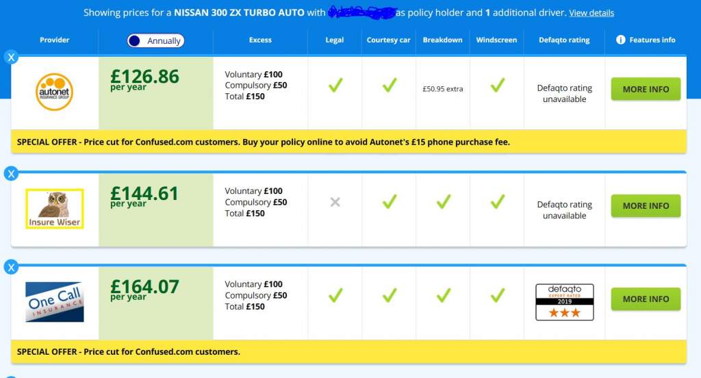 As with all things insurance, get it firmly ( in writing ) the model information, as mentioned above the term "Nissan 300zx auto" is sometimes mixed up by insurance companies with the Z31 model despite the age and can make a big difference.