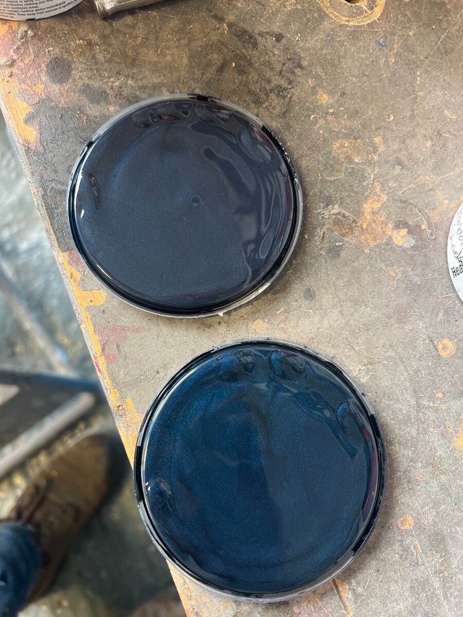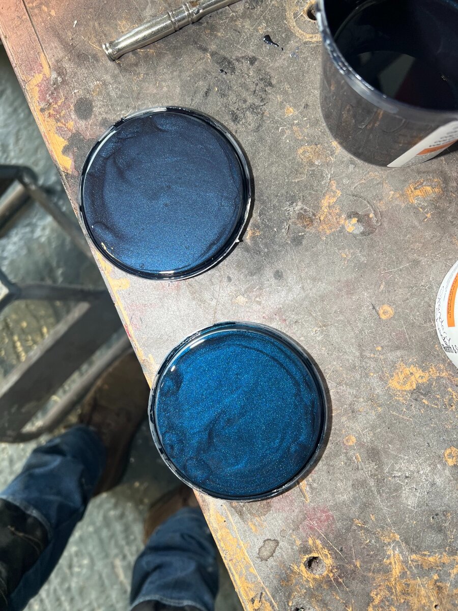 Some initial paint samples. One obviously much richer than the other! ? They'll be spraying samples tomorrow in various shades of light including daylight. They have this torch with something like 10 different output's of light level in K's e.g. 3000k or 6000k light, so you can get a pretty good idea of how the paint will look in all lights!
