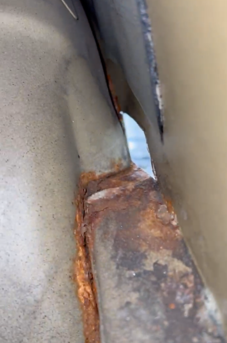 They found some rust lurking inside the drivers inner arch. How it started in there, I have absolutely no idea!