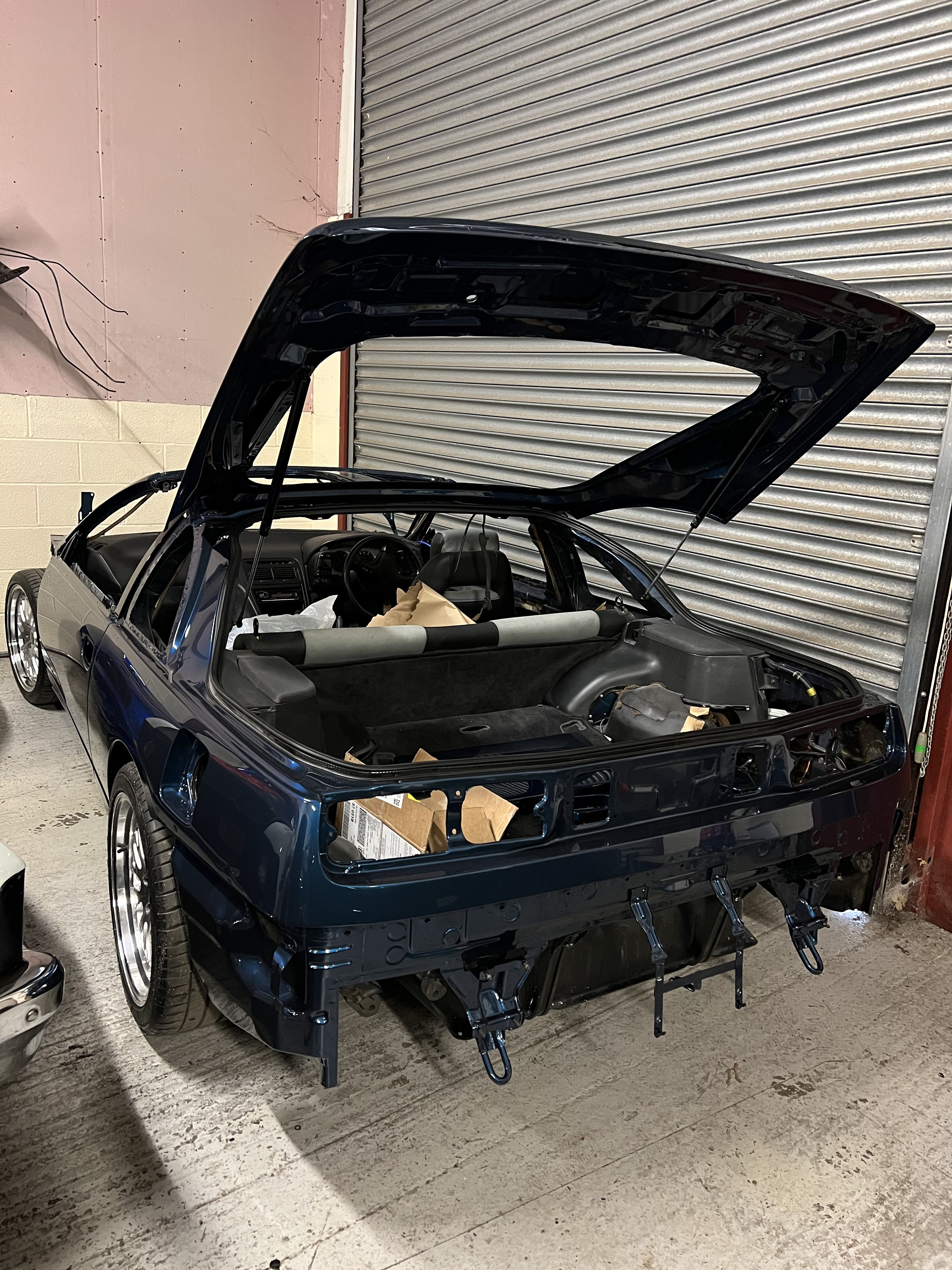 Looking much more like a car now. Windscreens and rear quarter windows going back in tomorrow. They mentioned how fantastic the doors feel to close now, with the new targa rubbers, a nice tight fit. Can’t wait to have properly sealing targa rubbers.