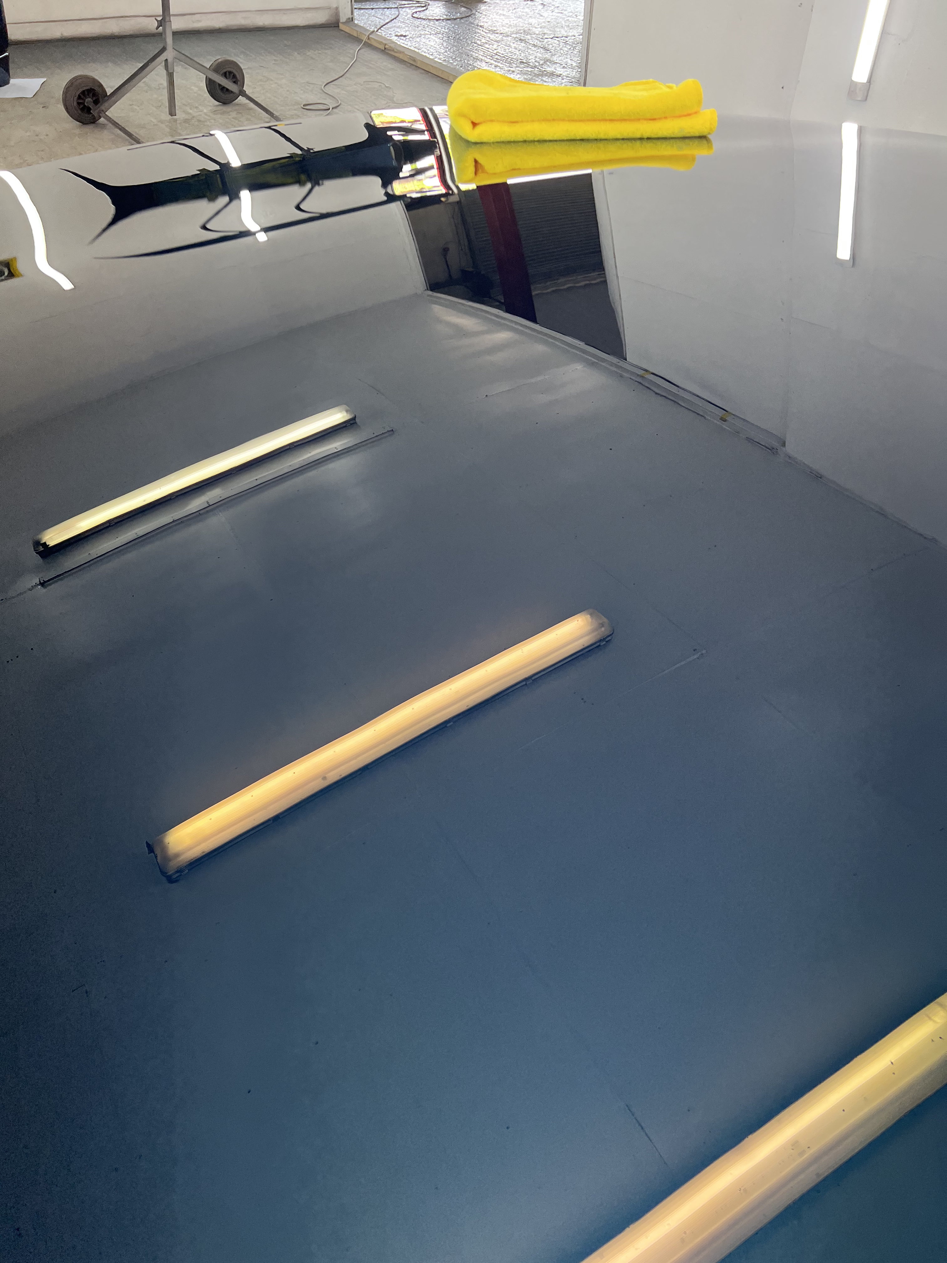 The shell was sanded today with various grit and polished. The panels were left off and being finished whilst off the car, to avoid polish getting stuck in the gaps and shuts. He used three different compounds, followed by one hand polish once all the panels are refitted.