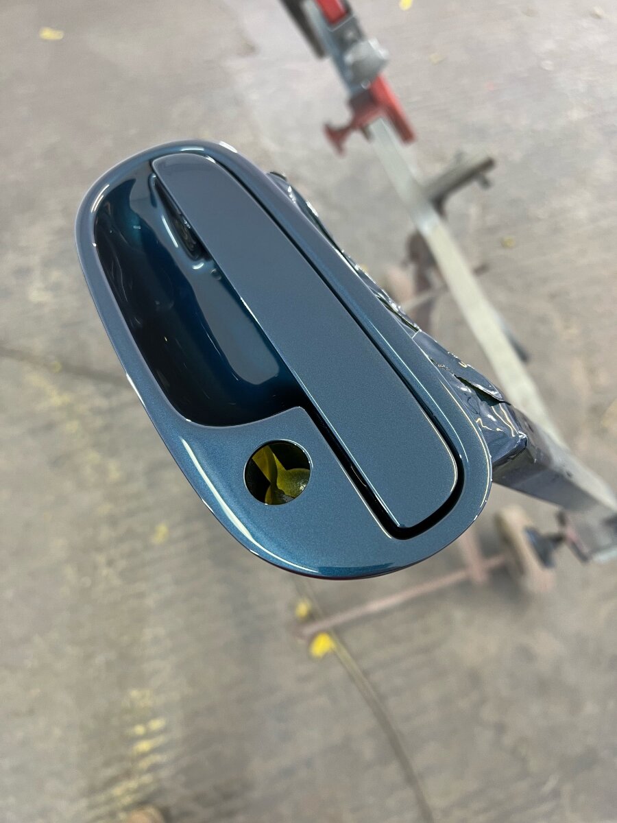 Lots more progress today - photos to follow. Interesting about the door handles, mine, as a lot seem to do, the handles themselves bend over age I believe, which causes them to scrape the inner top of the handle frames. Shame I don't have photos, but there were horrible scraping marks on them. The bodyshop file the area above the handle itself, to stop this ever happening again. If not done, then with new thick paint, they're bound to scrape again and ruin the new finishes. Shame they still haven't had a sunny day to get the car out for some photos!
