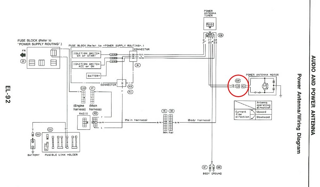 Power only gets applied to the aerial when the Power Timer Amplifier wants the aerial to go up or down. It does so by changing the current flow direction to the aerial. If you