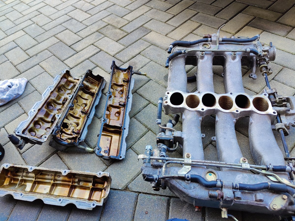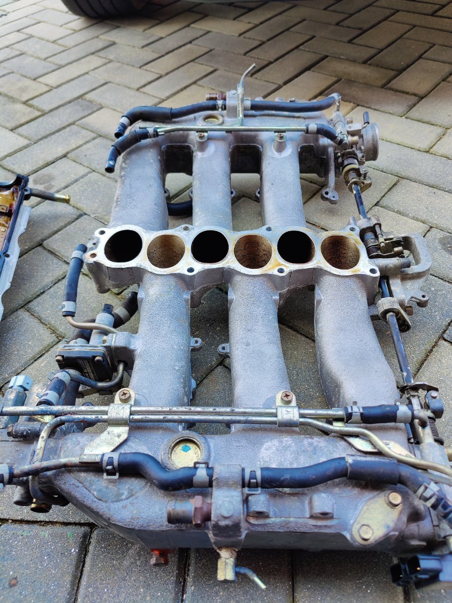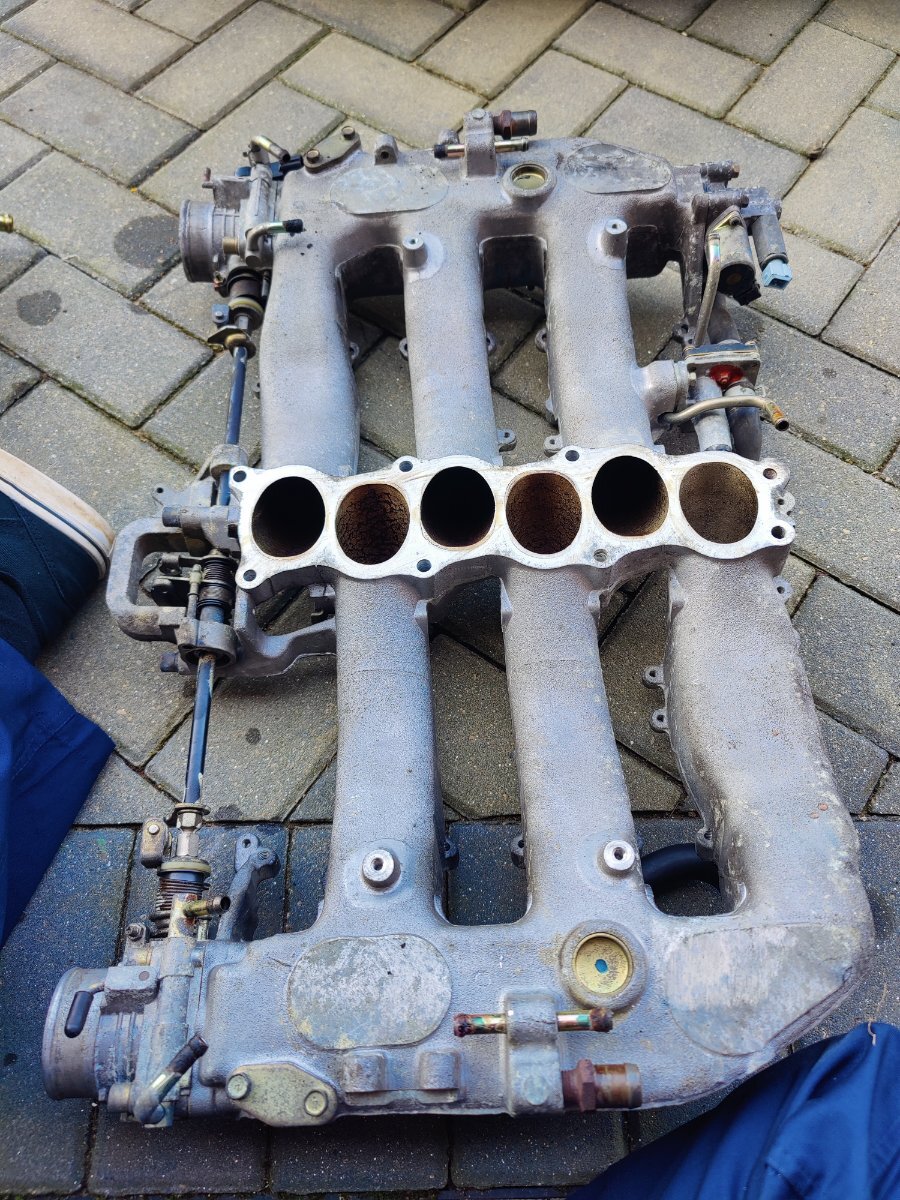 Balance bar and valve covers are at the powder coaters. He's stowed out so I won't get those back till Thursday next week. I started to clean up the plenum and applied a test patch of aluminium coloured gloss engine enamel. But tbh I don't think I like it. Will probably just clean up the stock look and leave it like that.
