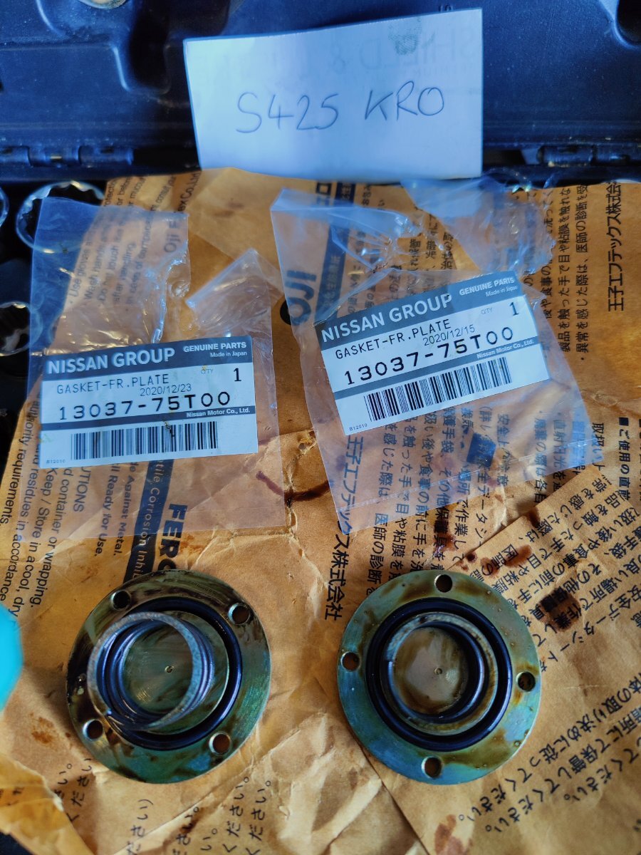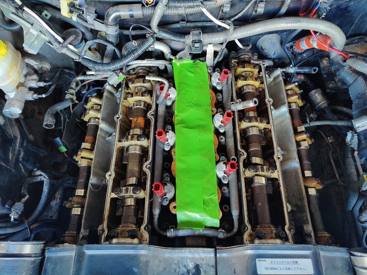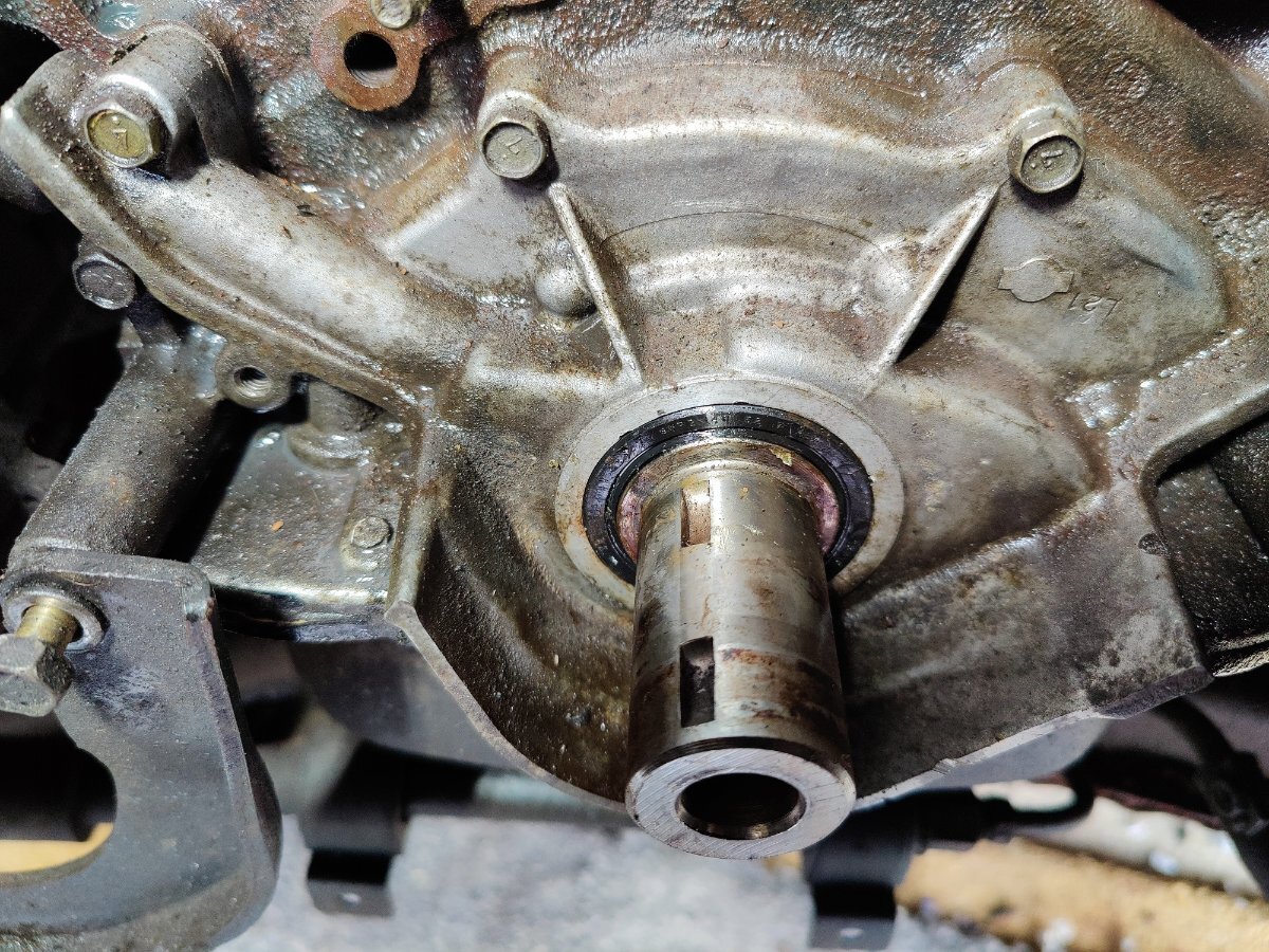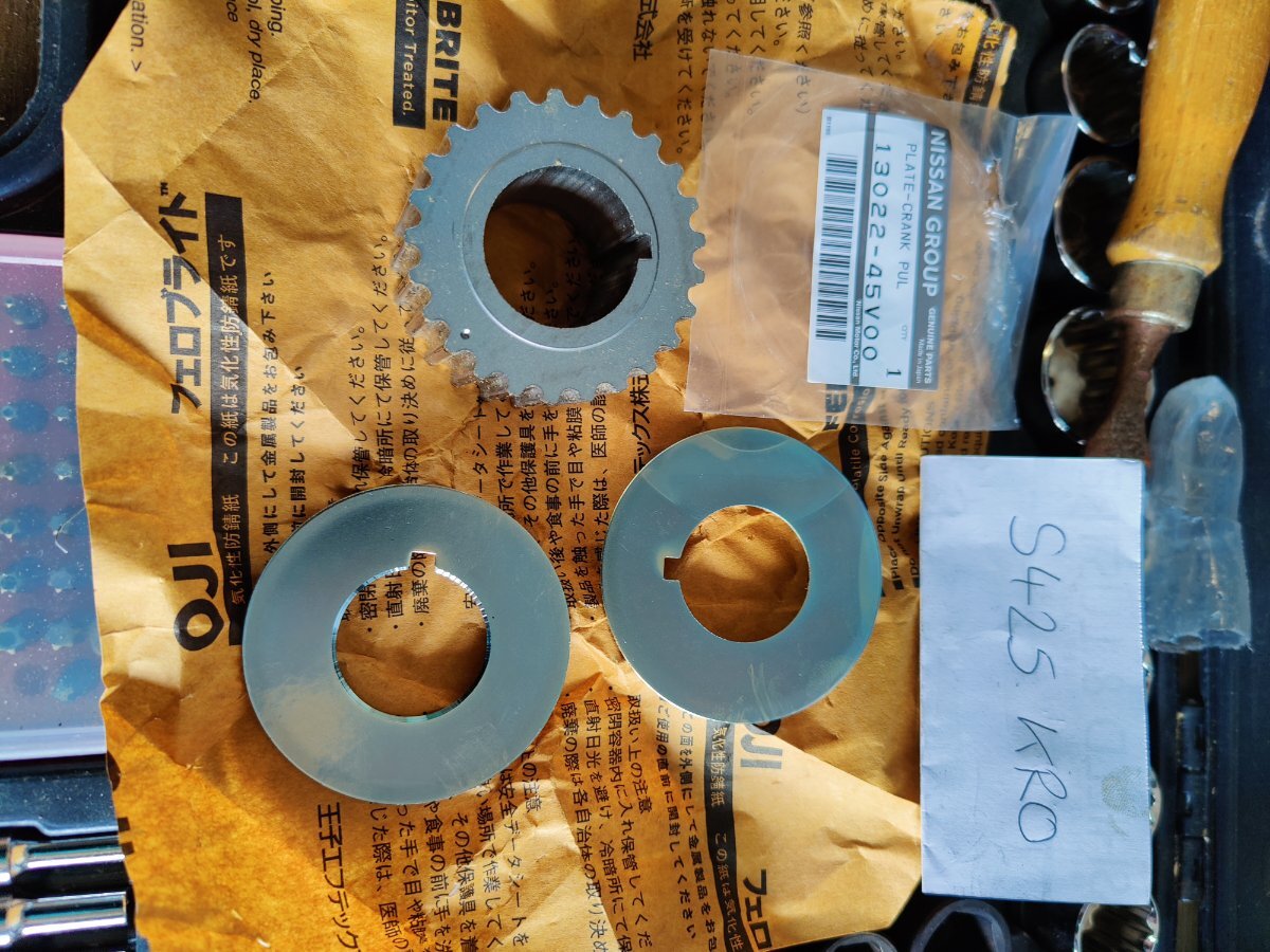 4 X cam and 1 x crank seals removed and replaced with new. New crank sprocket on. Cam gears fitted and torqued. New idler studs on. New water pump fitted. Tensioner correctly gapped at 4mm and loosely fitted.