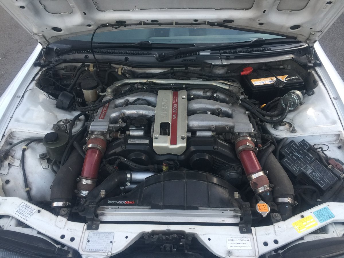 Thanks Art! The HICAS is still operational. If you mean the gap on the lower left of the engine bay, there was a change from hydraulic to electric in 1994(?) which removed that part. The clutch has been changed - possibly an OS Giken one is installed,