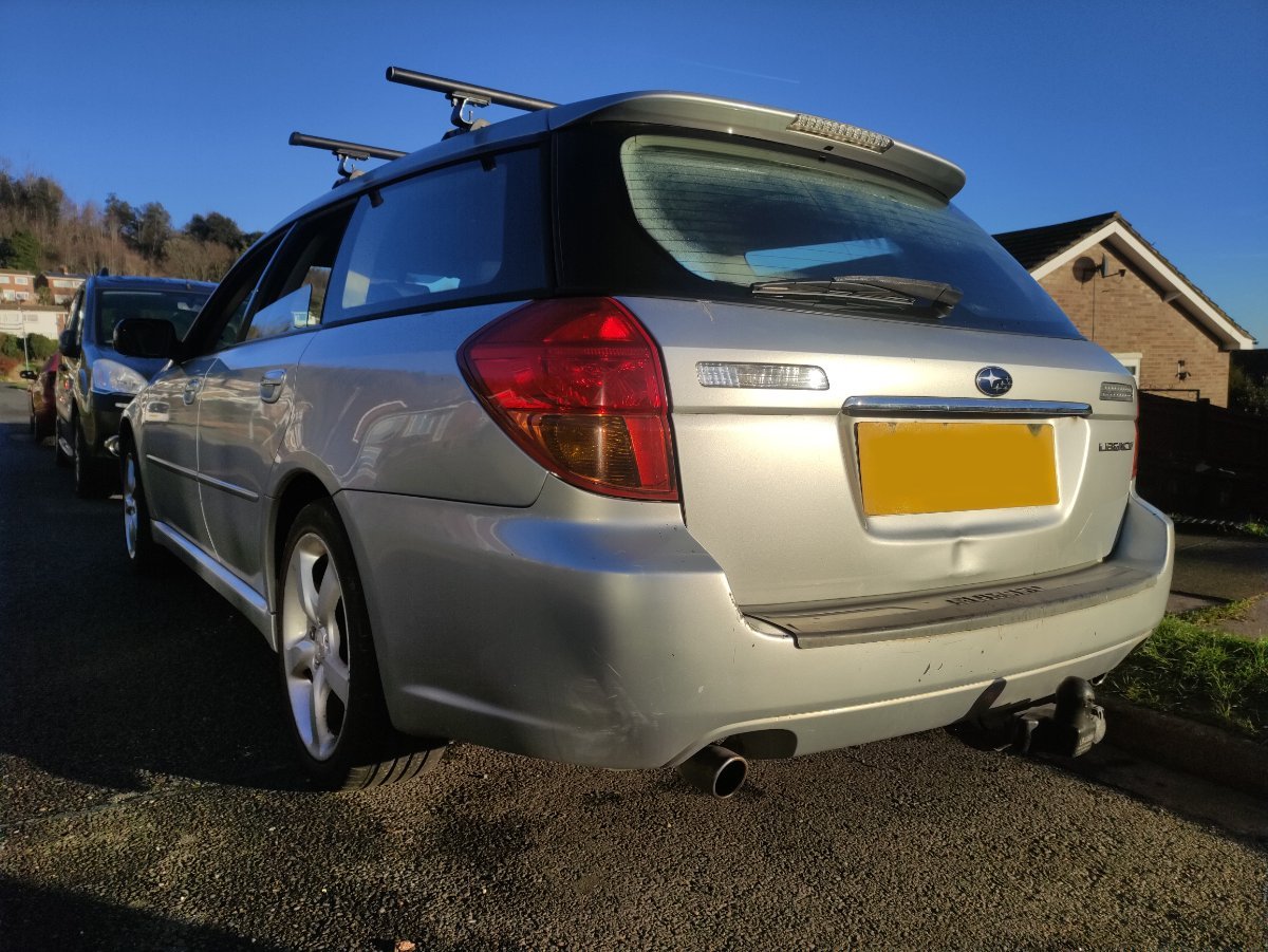 It's a Subaru Legacy 2.5L Boxer engine with AWD and a hi-low gear centre diff. It's done 171K, serviced every year by Subaru up to 4 years ago, then by a private garage. I'm the 3rd owner. The bodywork and boot interior is a bit tatty as its was tip run car/dog car, but I gave it a really good clean and polish and some of the damage has disappeared. It came with the roof bars and tow bar, so that's helpful and saved about £300. I'll probably never need them, but good to know I have them. I wanted something a little beaten up and old, so that I don't want to spend money on it (I want all my money to spend on my zed) but at the same time I wanted something a little different, a little cool and fun. How much you ask? £850... It's worth that for the pillarless doors...