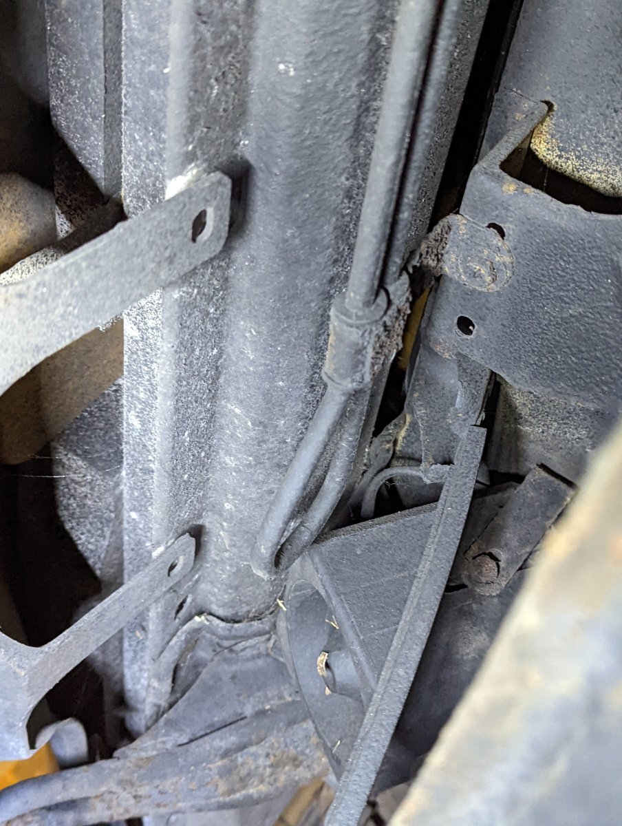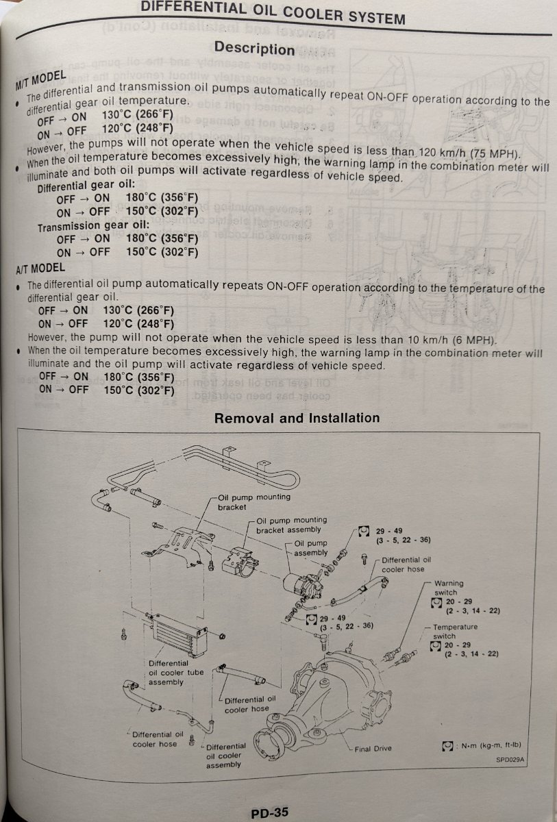 I have noticed a hard-line that runs behind the tank and parallel to the rear bumper and loops back that seems to connect to the rear diff cooler. These are very rotten at a point on my Z.