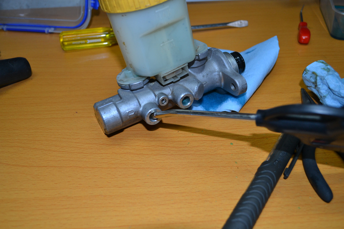 1. Removing all of the hydraulic pistons from the caliper body.