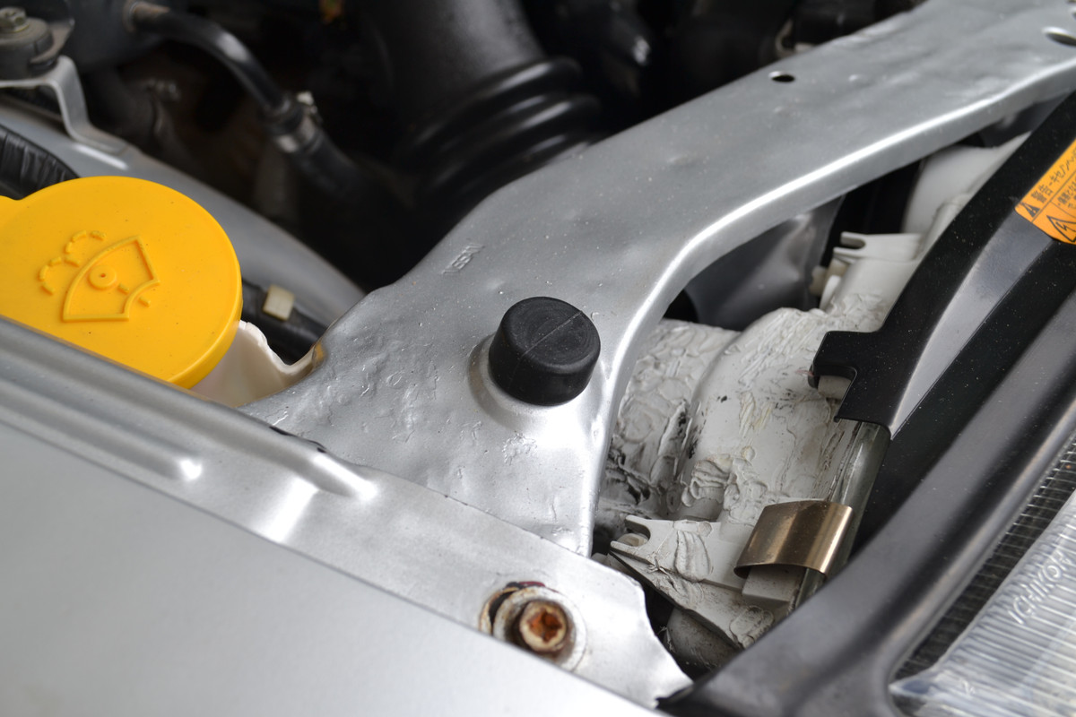 Cracked front bumper bar, plenty of minor scratches and marks on OEM body paint work, badly rusted battery tray, damaged drivers seat side bolster, missing OEM scissor jack and tool kit, no OEM stereo installed and the dashboard had the common lifted demister vent damage