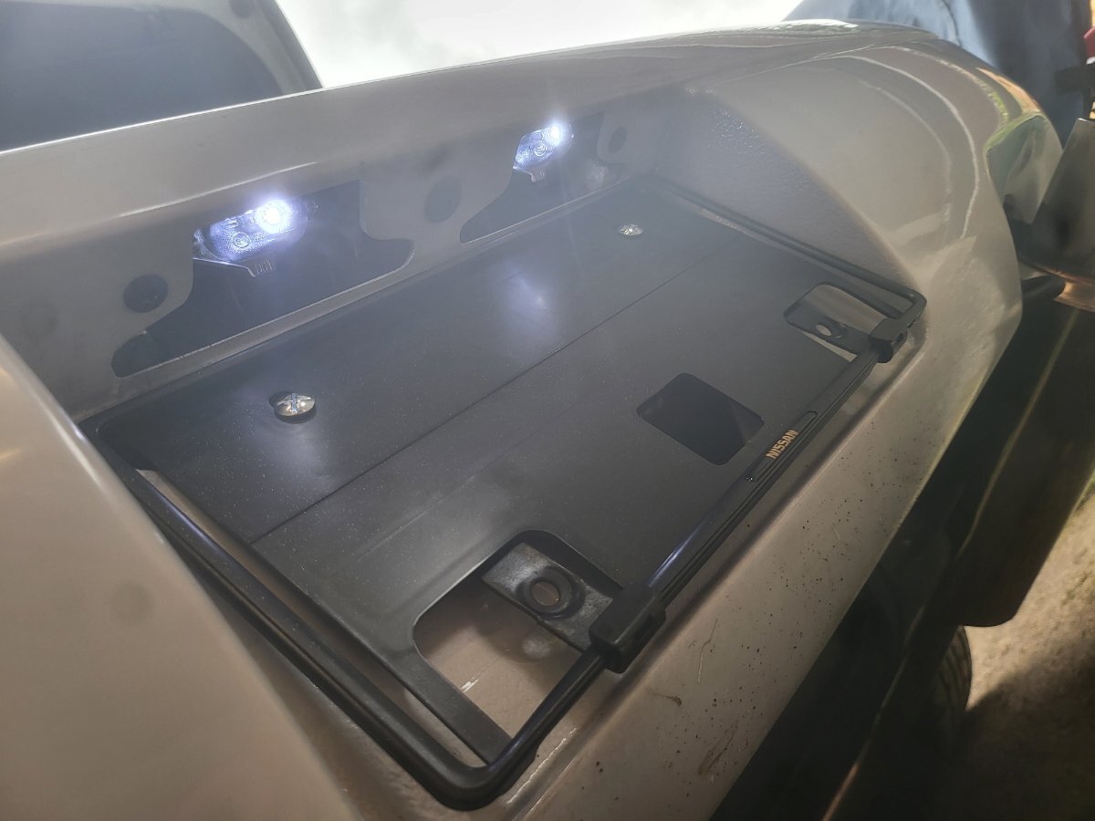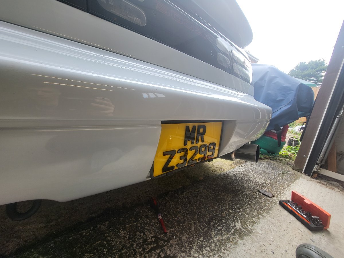 Had a little time today seen a though I couldn't make the 300 meet as the car isn't quite running right Changed the rear reg plate harness as the bulb holder was crumbling away so only 1 light was working Also fitted a new rear number plate backplate which apparently is pretty rare with "nissan" writing from japan. Also got some 4d plates while i was at it to add a little pop, imo looks loads cleaner Finished off with a clean 😃