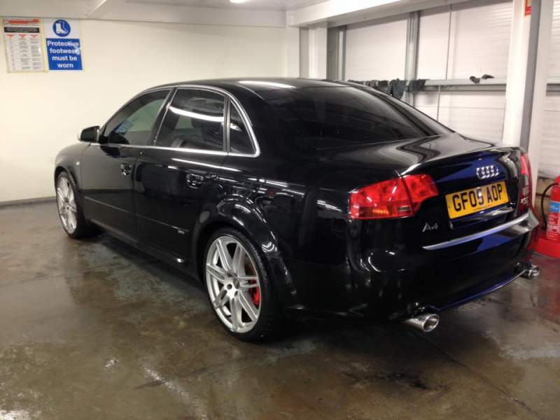Well it has taken a while to put this up here, but here she is..... 2005 2.0 TFSI Petrol Audi A4 Quattro S-Line with S4 19"wheels, S4 mirrors, S4 twin oval exhaust system, privacy glass, MANUAL.... yes there you have it, I own a manual again.... (Si, Mondo, Stephen, Znut, Gaz).... lol And she is lovely to drive.... quick, smooth and fun...... Yes she needs a clean.... and good polish, and clay bar....lol