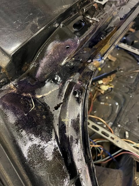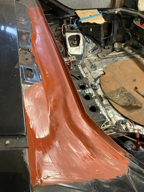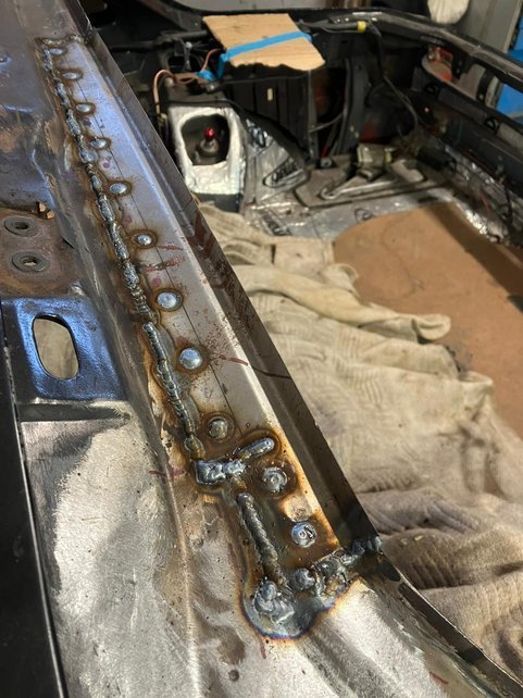 Body repairs were delayed due to my body guy needing an Op but the Sills have finally been completed. A lot more work was required than I imagined, and the complexity of the sill construction was the highest the welder had ever seen in a non-convertable, Did you know there are 5 layers of metal in the sill? A few more small jobs and should be ready for paint!