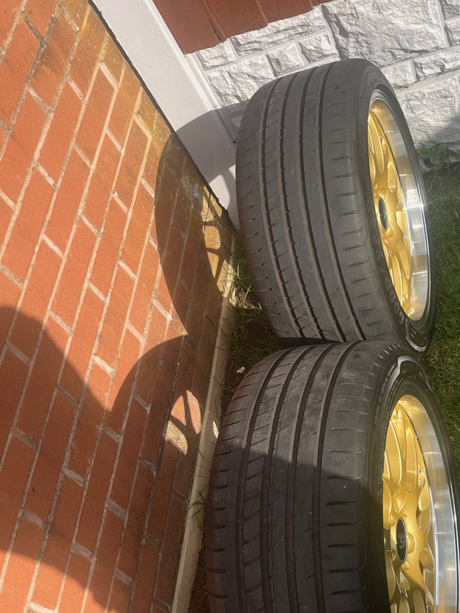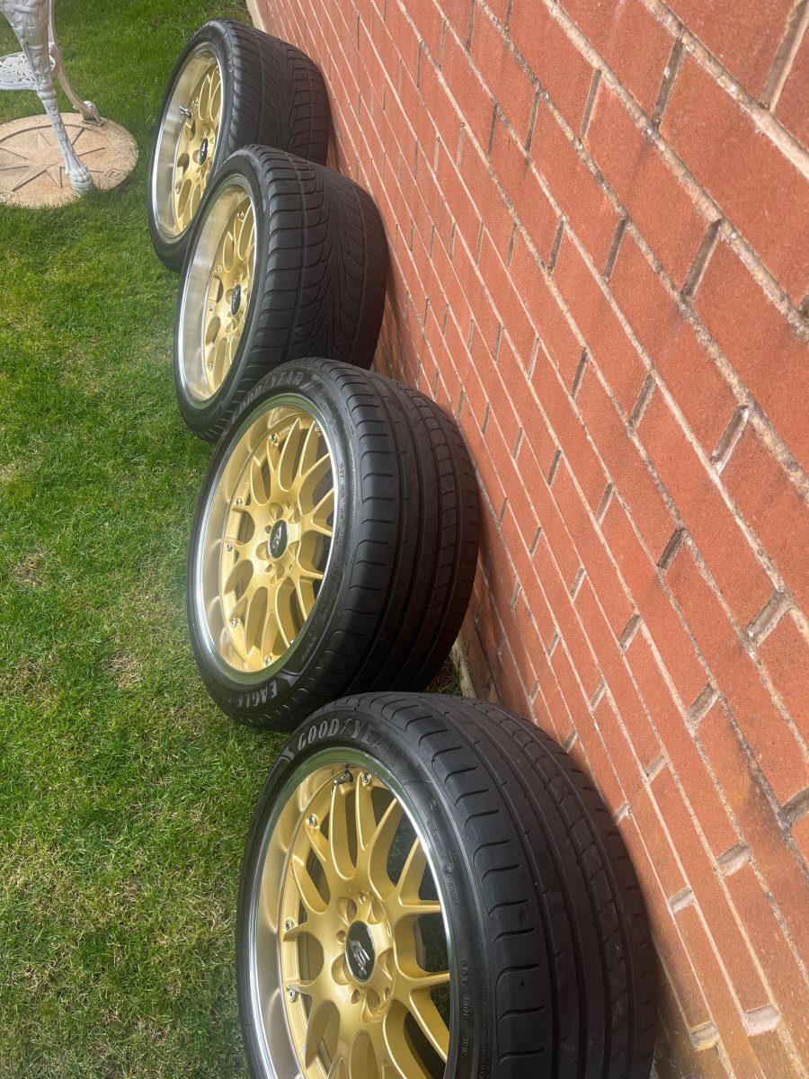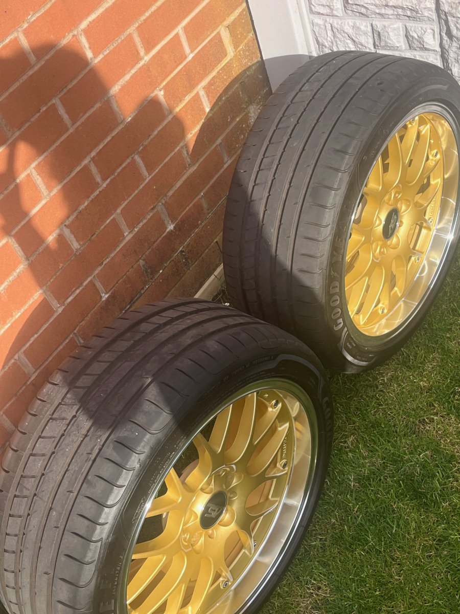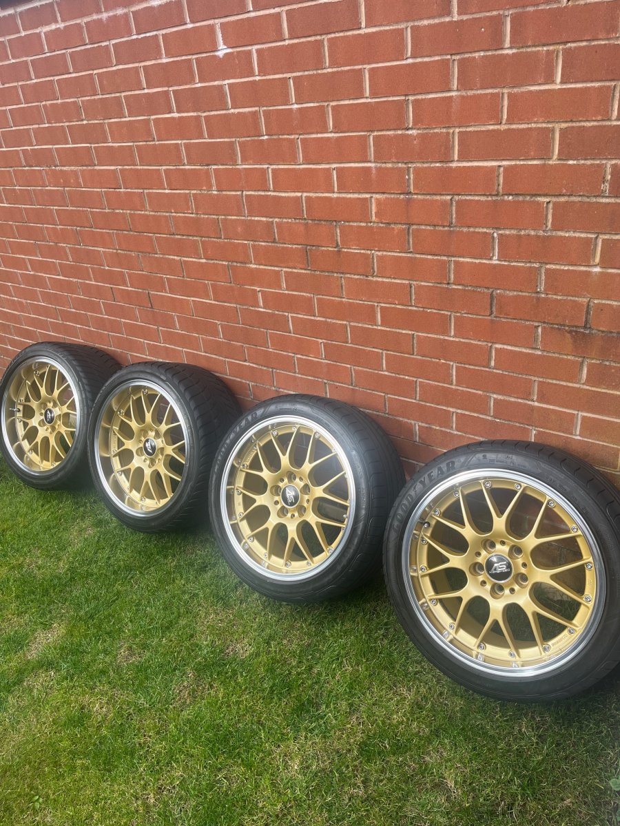 1. front wheels 18 by 8 1/2 J tyres 235-40-18 back wheels 18 by 9 1/2 J tyres 265-35-18 slight curb damage on the two front wheels, see photos. collection only from stoke on trent, please contact on this number, 07975940525 £350