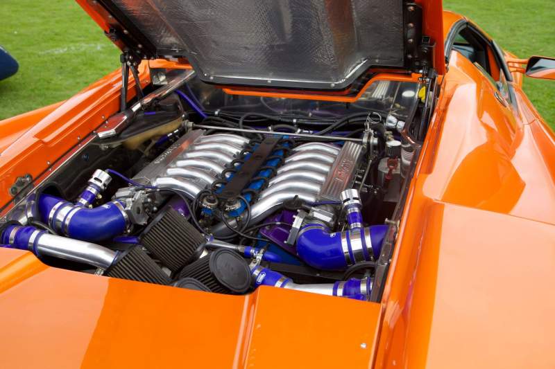 My mate built this replica Diablo. It has lights of course from the 300zx but more interesting (and relevant) is the BMW V12 he fitted that has been given the addition of FOUR turbos also taken from 300zx's. Not sure on exact power but it's no slouch!