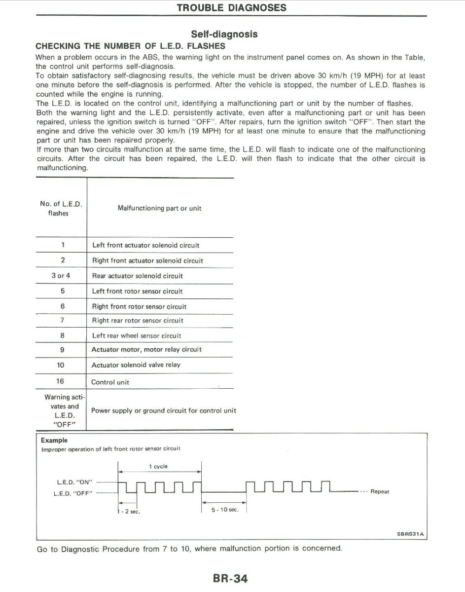 The speedo gauge itself has a signal processing function from the speed sensor (analogue wave form) to the electronics for the ECU/HICAS/Power Steering/Cruise Control and the odometer. Was the odometer still working after the speedometer failed? It is worth checking the speed sensor for this fault condition: https://www.300zx-owners.club/forums/topic/161221-1993-tt-lwb-in-black/page/4/#findComment-1771548 The ABS Self - Diagnostics is below. ABS light comes on when there is a fault.- What did you do to your zed today?
