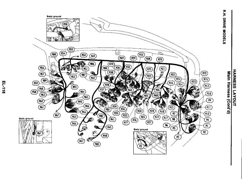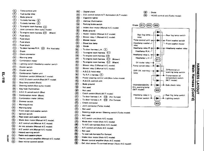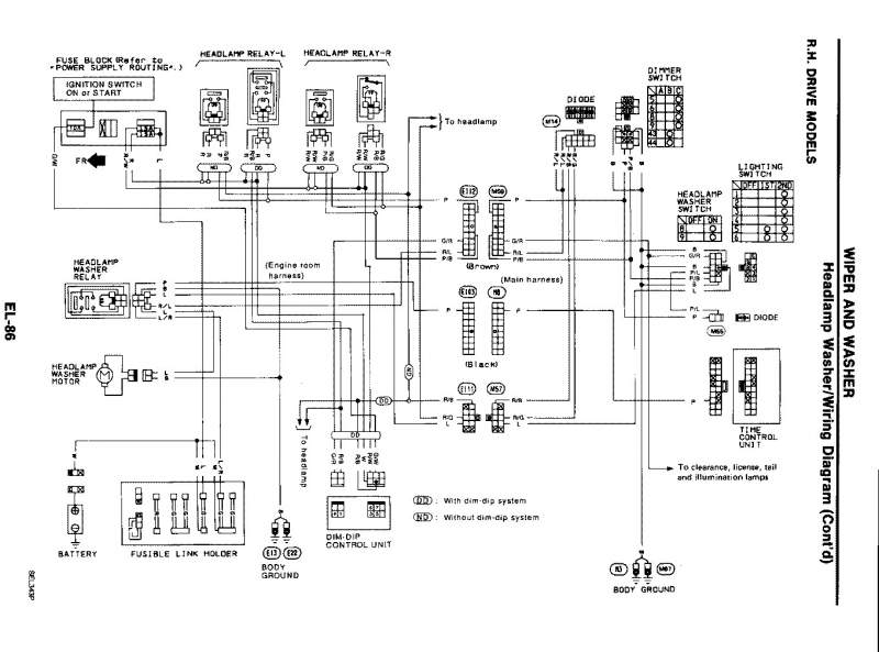 Headlamp/Washer circuit diagram: Headlamp washer relay shown as E42 with location: Diode pack shown as M14 with location: