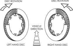If your discs have curved cooling vanes, then the discs themselves are directional and should be installed with the cooling vanes running back from the inside to outside diameters in the direction of rotation. -Andrew