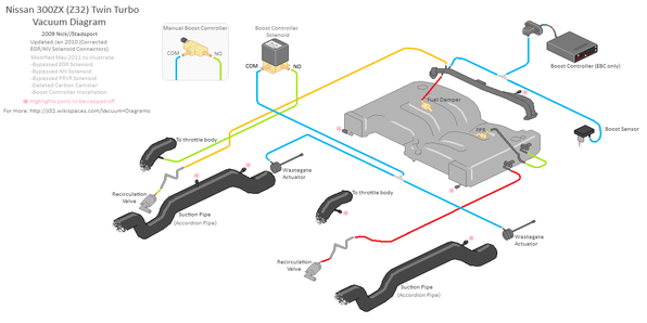 right i have seen a few diagrams of fitting for the boost controller. i get that the actuator pipes need to be T'd together and ran to the solenoid but do you T off to both intercooler pipes or just the one and blank of the other pipe that run to the other side of the solenoid?!?!?! i would have thought being a twin setup it would have to be T'd to both...... im totally confused with this